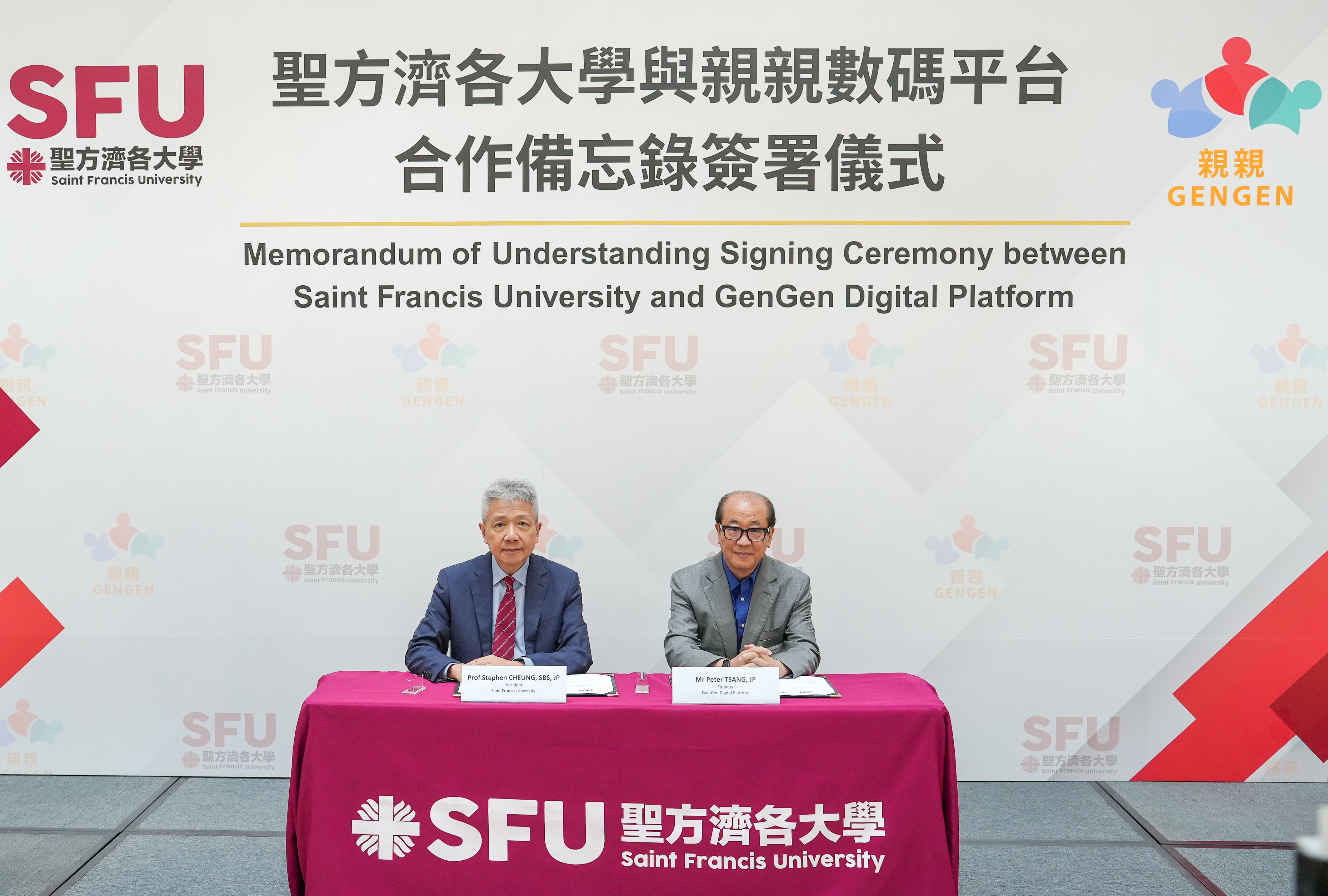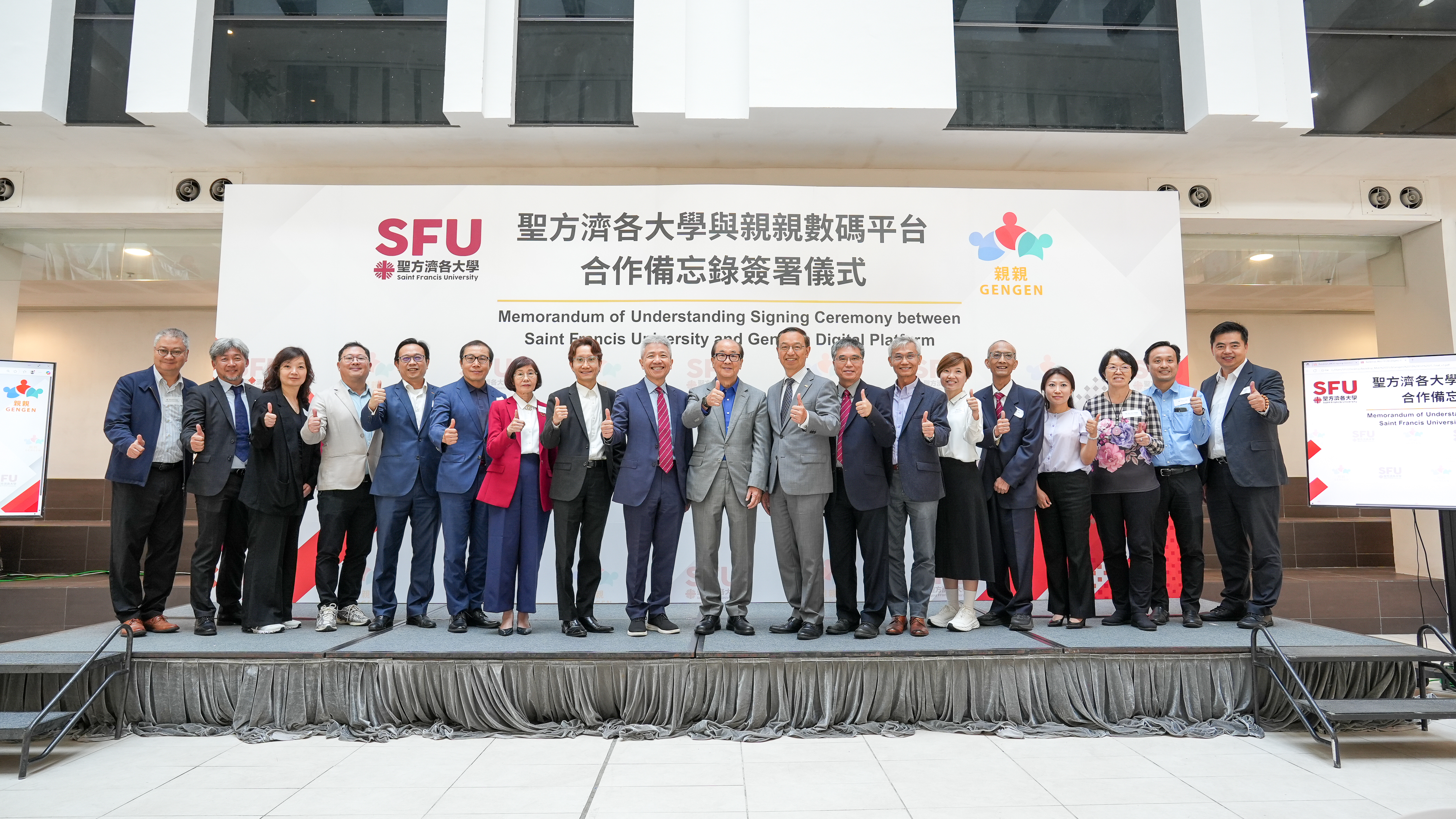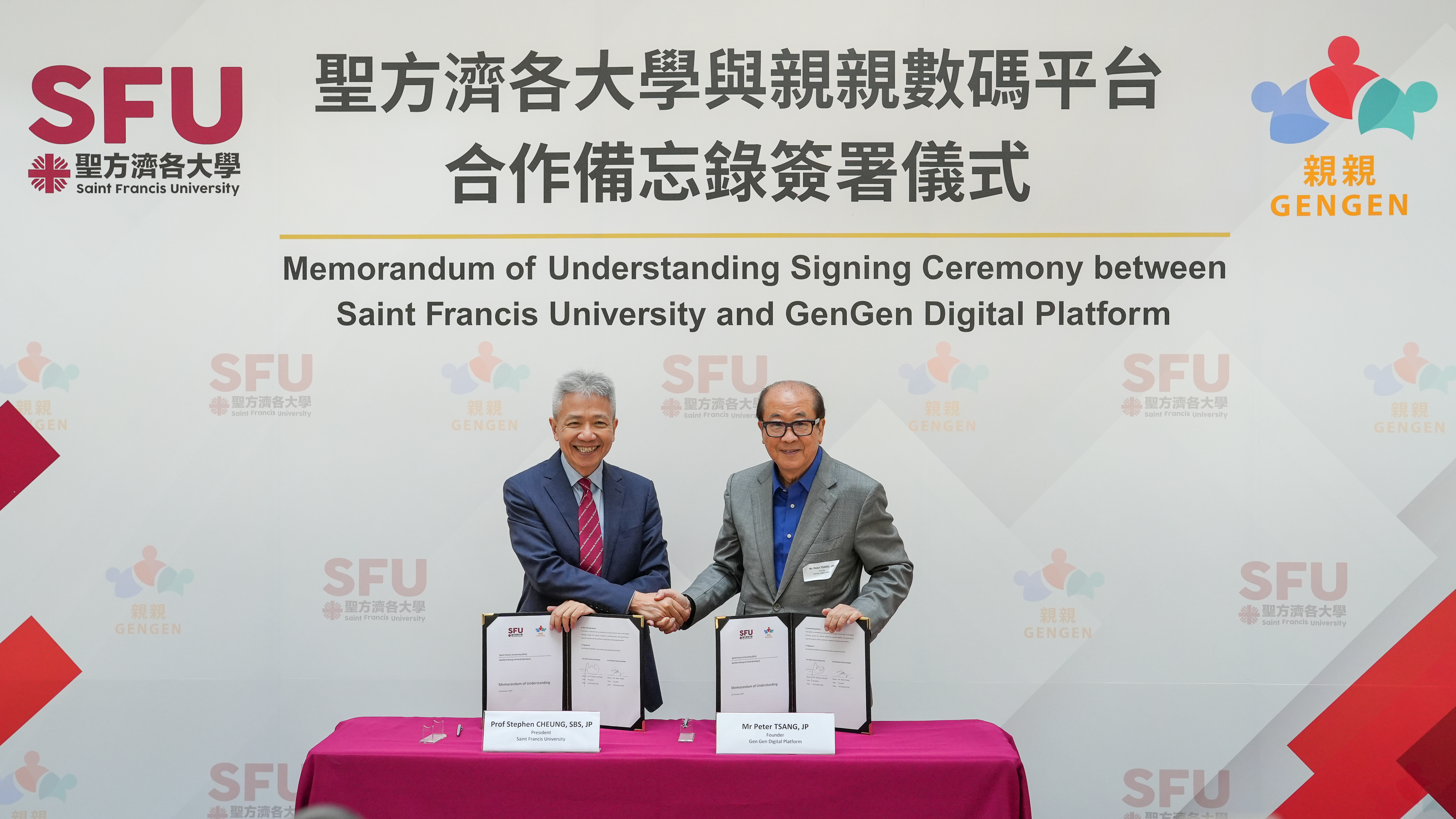 Saint Francis University (SFU) and the GenGen Digital Platform signed a Memorandum of Understanding on 10 October 2025 (Friday) to launch collaborative academic and research initiatives. These will include the joint development of an E-Medication platform with digital healthcare solutions tailored for elderly users. The initiative aims to enhance the health and well-being of seniors through Gerontechnology, while data collected from the platform will be utilised for academic research to improve elderly healthcare.