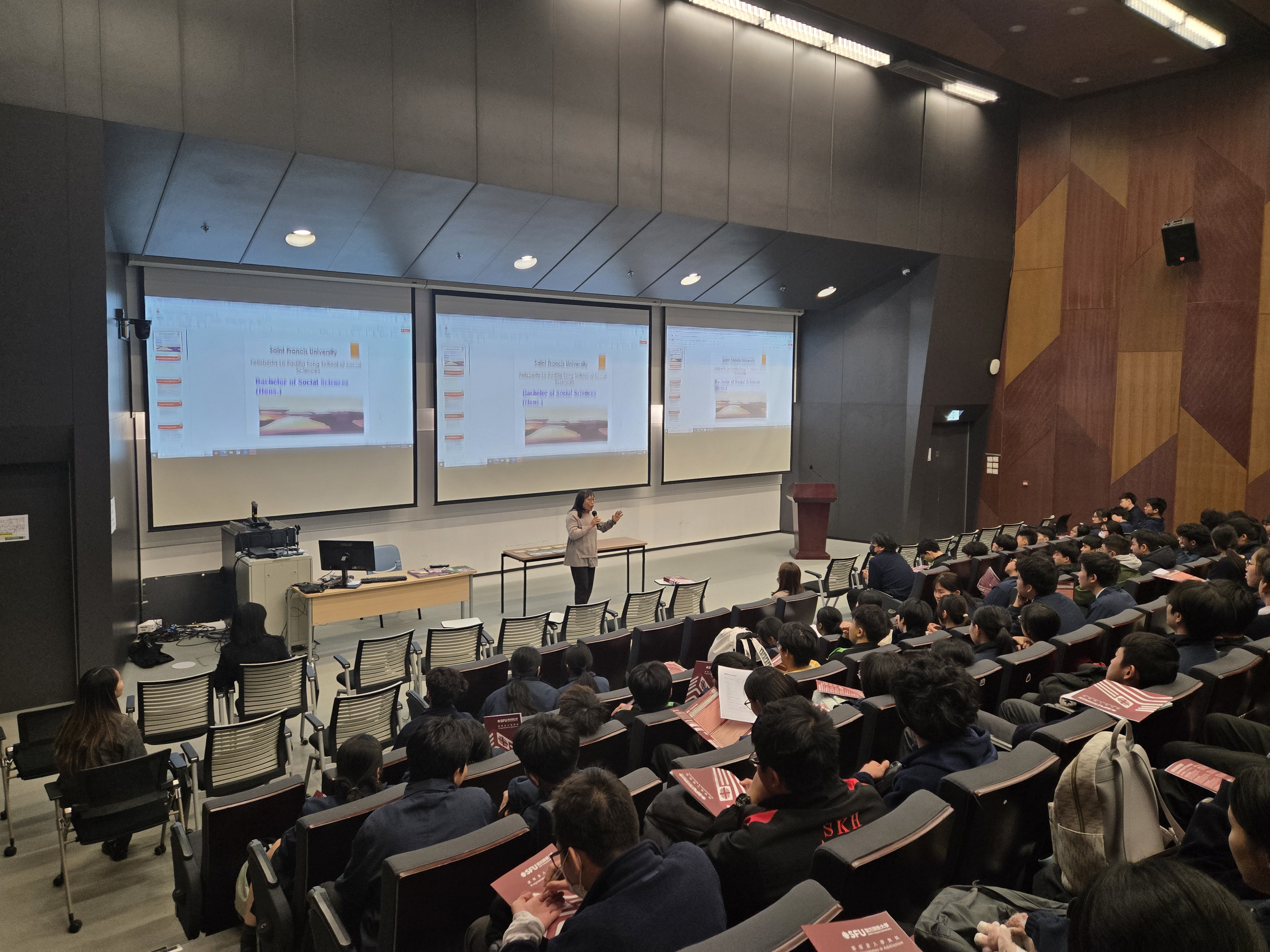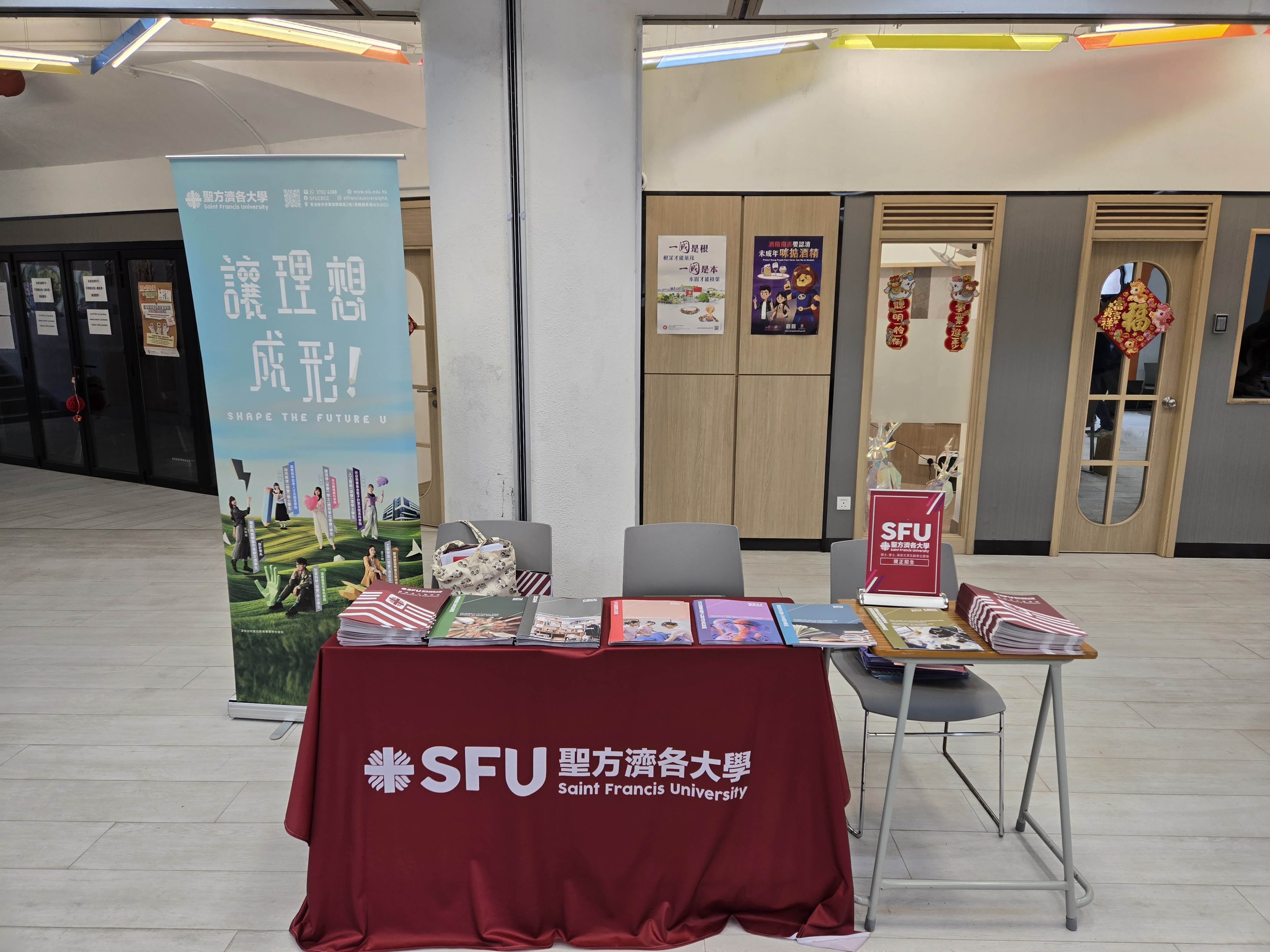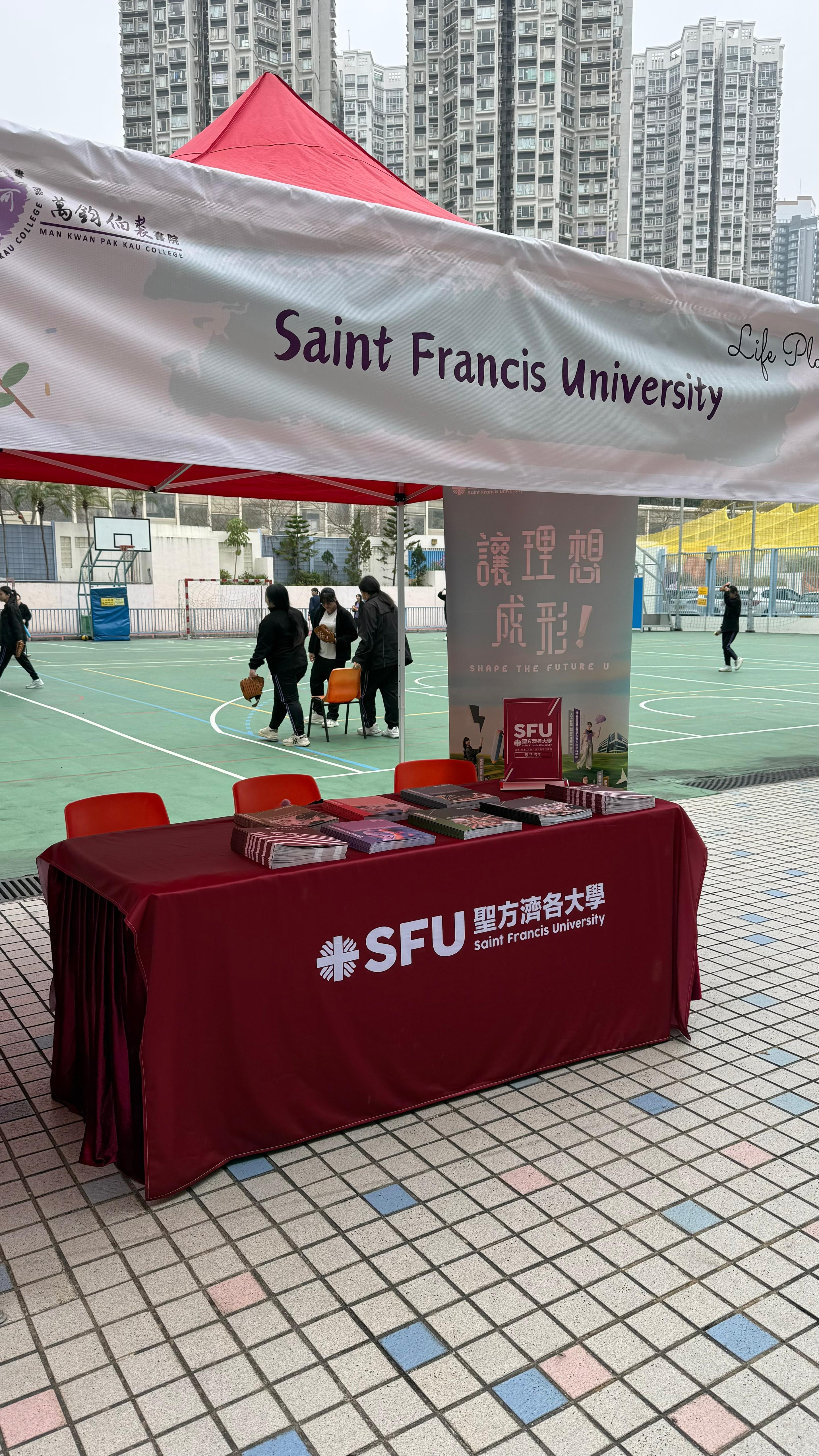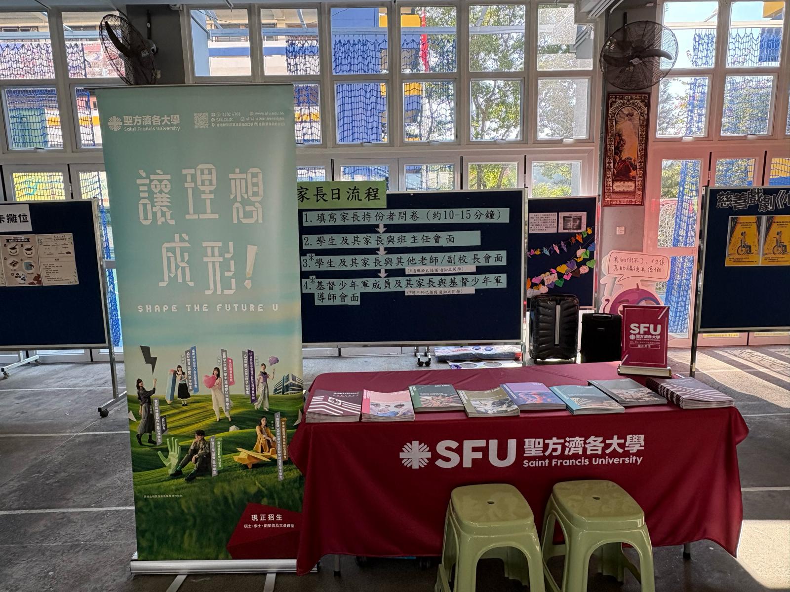 On 29 November 2025, Saint Francis University (SFU) participated in the Joint-School Higher Education Expo 2025 organized by HKSKH Bishop Hall Secondary School. There were an estimate of 500 Form 5 and 6 students, teachers and parents participated in this event; they are from HKSKH Bishop Hall Secondary School, Po Kok Secondary School, St Stephen's Church College and China Holiness College.