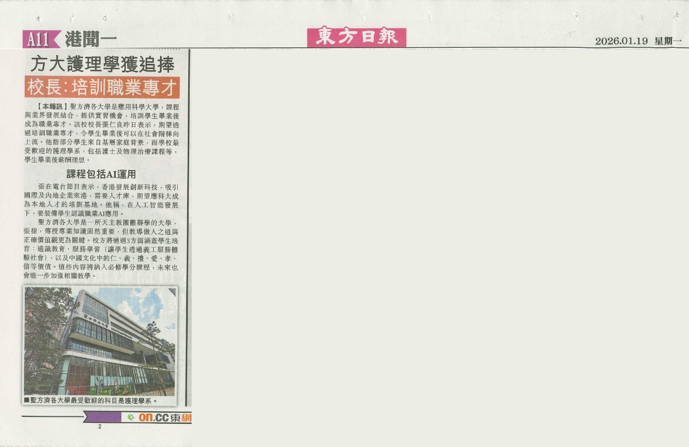 东网: 圣方济各大学培养职业专才 期望学生毕业后向上流