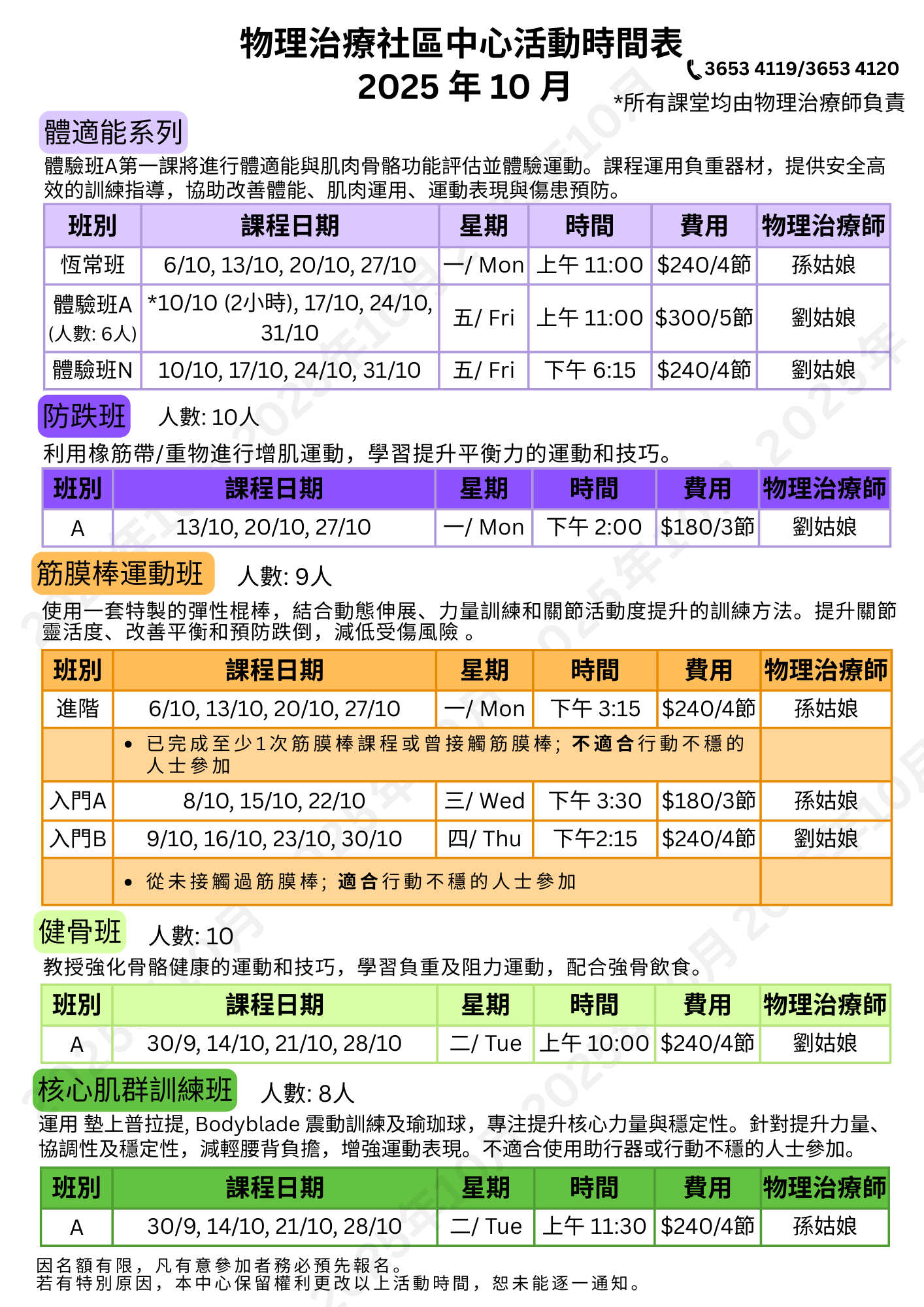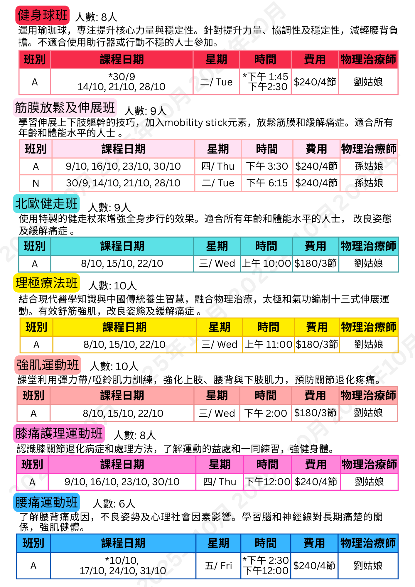 *10/10 (2小時), 17/10, 24/10, 31/10 |