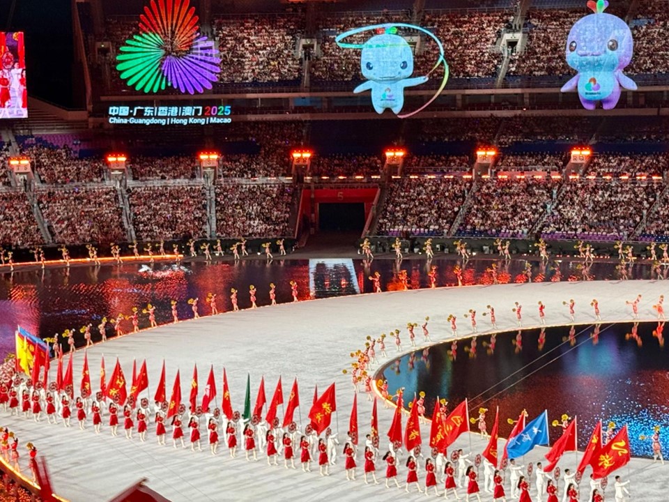 The ceremony, themed "Realizing Dreams for the Future," showcased the creative concept of "Concentric Circles." It unfolded in three major chapters—"Shared Roots, Shared Heart, Shared Dream"—illustrating the rich cultural traditions of the Guangdong-Hong Kong-Macao Greater Bay Area alongside a visionary future. The performances seamlessly integrated advanced technologies, including artificial intelligence and naked-eye 3D effects, harmoniously intertwining sports, artistic expression, and innovation in line with this year's Games theme: "Play for the Dreams in Greater Bay Area."