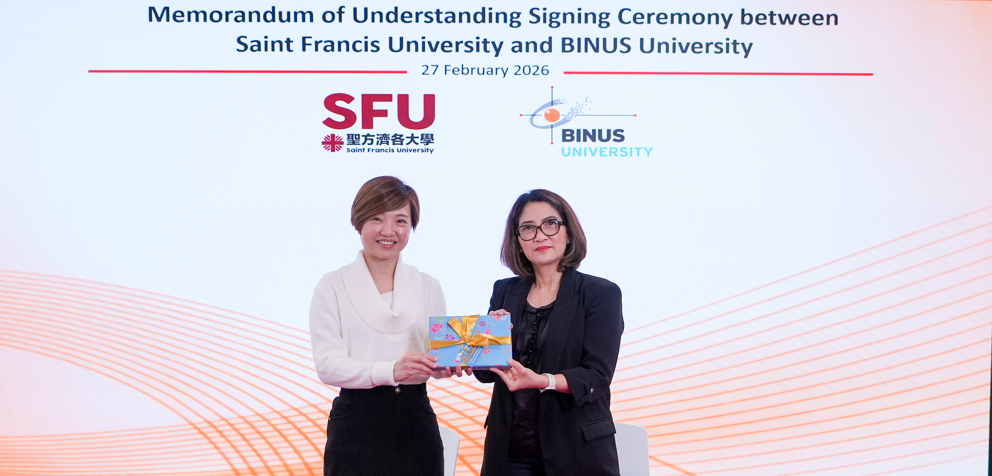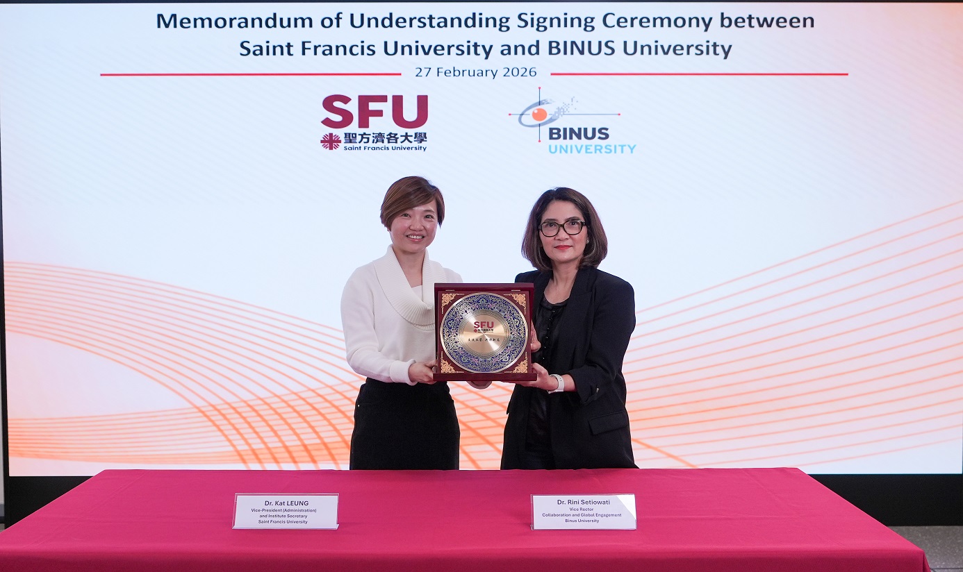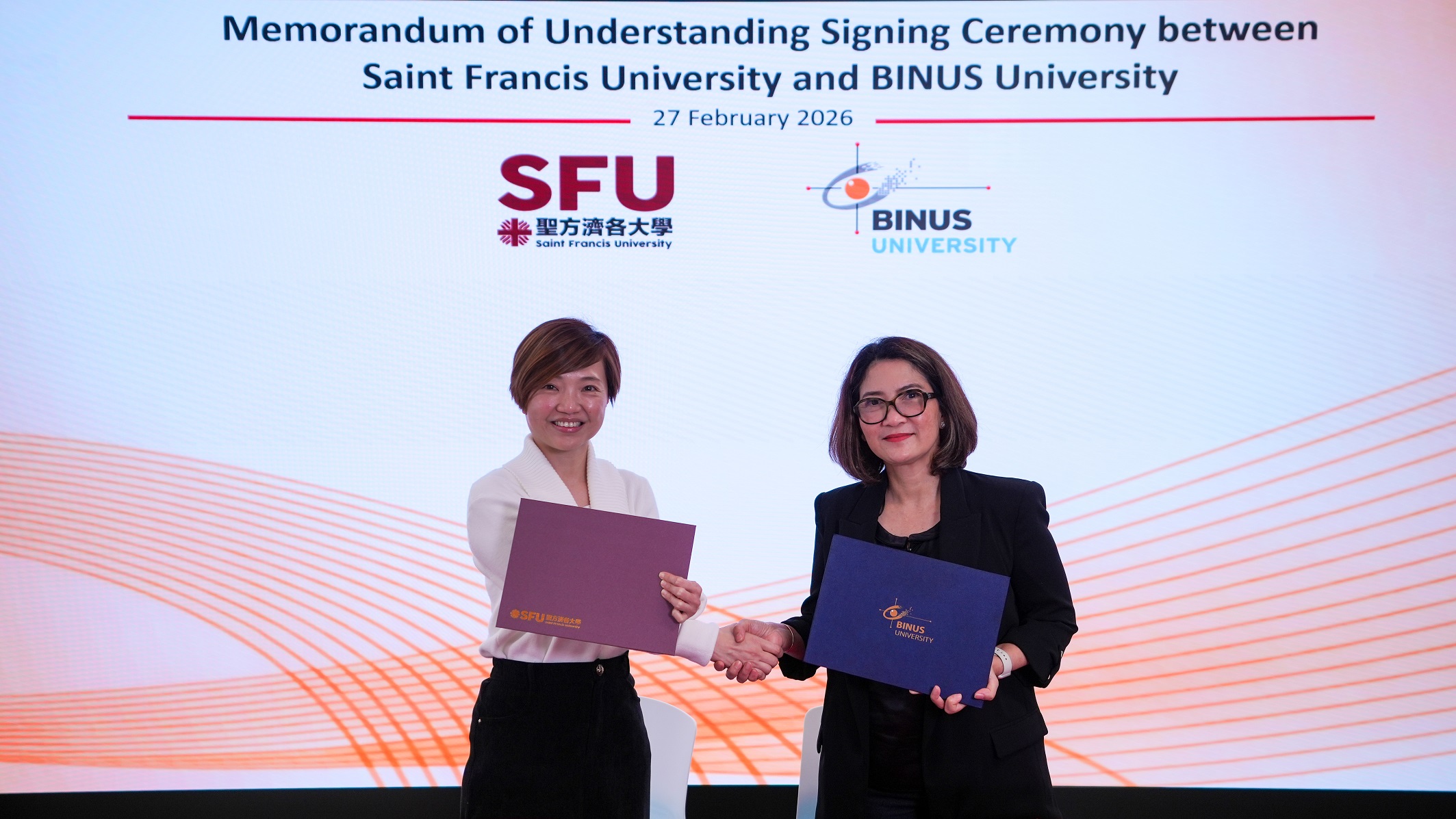 On 27 February 2026, Saint Francis University (SFU) and BINUS University of Indonesia officially signed a Memorandum of Understanding (MoU). The two institutions explored collaboration opportunities including in the areas of Business, Hospitality, Fashion Design, and Film Production — with the shared goal of nurturing high-calibre talents equipped with professional and strong crosscultural competence.