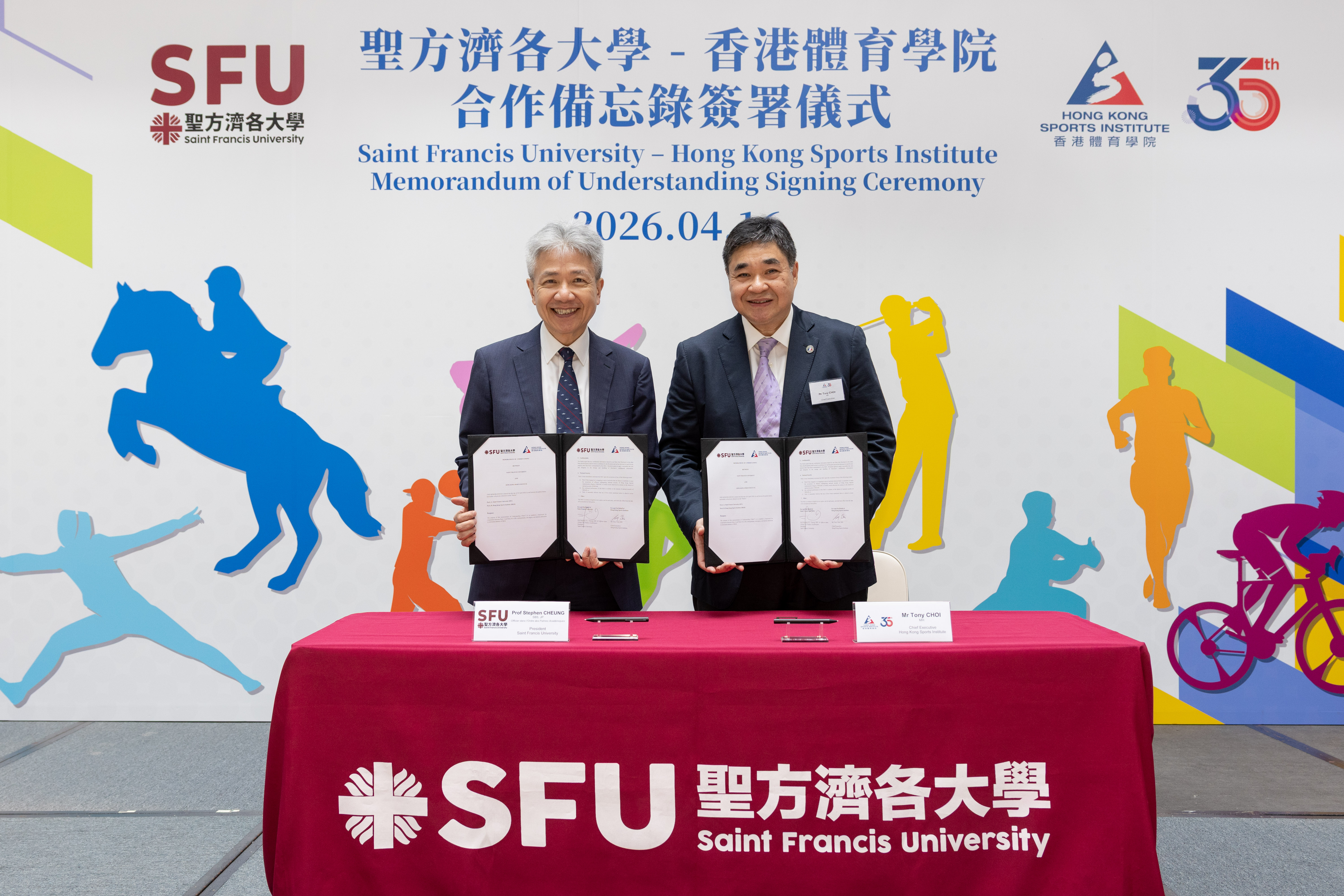 Saint Francis University (SFU) signed a Memorandum of Understanding (MoU) with the Hong Kong Sports Institute (HKSI) to broaden further study pathways for elite athletes. Under the partnership, Scholarship Athletes nominated by the HKSI will be eligible to apply for designated full-time bachelor's degree, sub-degree and diploma programmes offered by SFU, supporting their dual career development and long-term planning for diverse future pathways.