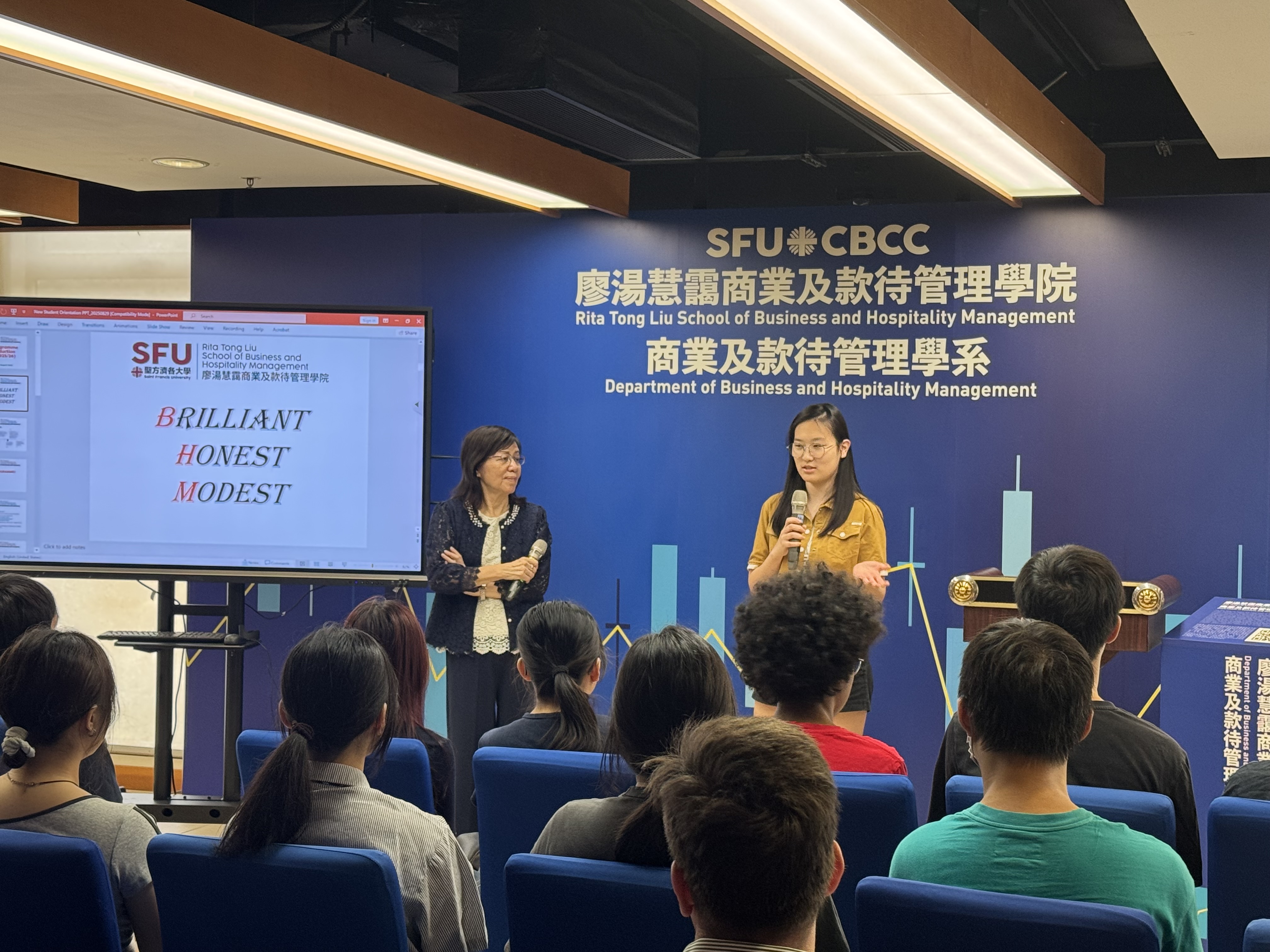 Ms Jennifer Yeung (Director of Glorious Sun Enterprises Ltd.) and Mr Dennis Hui (General Manager of Holiday Inn Express Hong Kong Kowloon CBD2) came to BBAHM class to share about the knowledge of hotel industry.