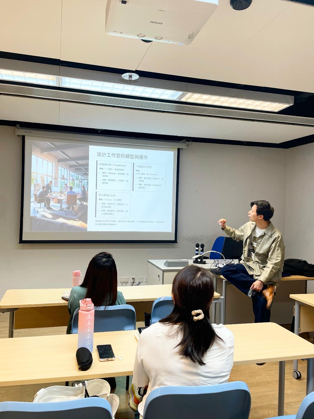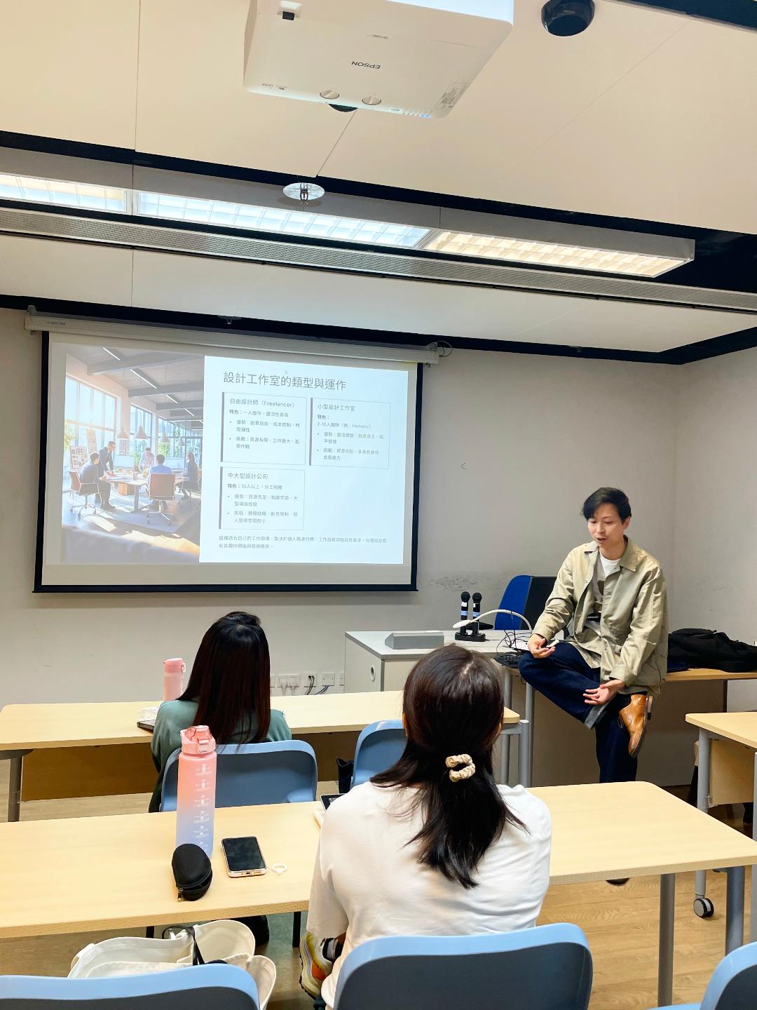Designer Mr Ray Hung addressed the Bachelor of Entrepreneurial Management (Honours) in Design Business (BEMDB) class in the course Professional Practice in Creative Industry. He elaborated on professional practice in design studio management in the interior design industry to give students an understanding of the real-world context and operations.