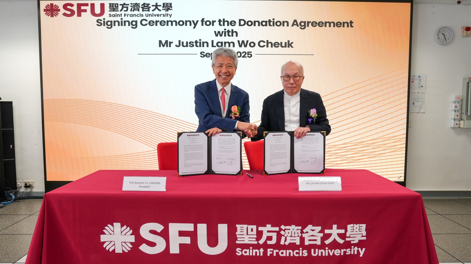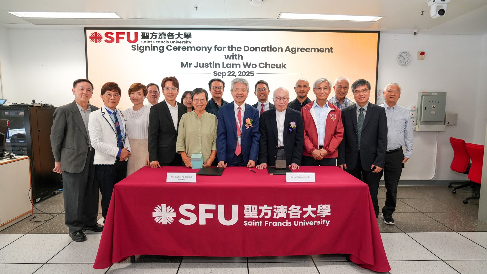 圣方济各大学(方大)由校长张仁良教授代表,与林和卓先生签署捐款协议。签署仪式于方大校园举行,并由大学高层管理团队见证,包括常务副校长余婵云教授、副校长(学术及质素保证) 罗仲时博士、副校长(研究及发展) 卢铁荣教授、副校长(财务及拓展)陈文浩先生、副校长(行政)及秘书长梁诗明博士、协理副校长(大学拓展)梁乐健博士、任白慈善基金电子计算及信息科学院院长陈庆鸿教授、叶应桃李如意人文及语言学院院长陈善伟教授、汤罗凤贤社会科学院院长黄于唱教授、研究生院院长陈德茂教授、 学务长吴海雅博士,及一众其他部门主管和职员。