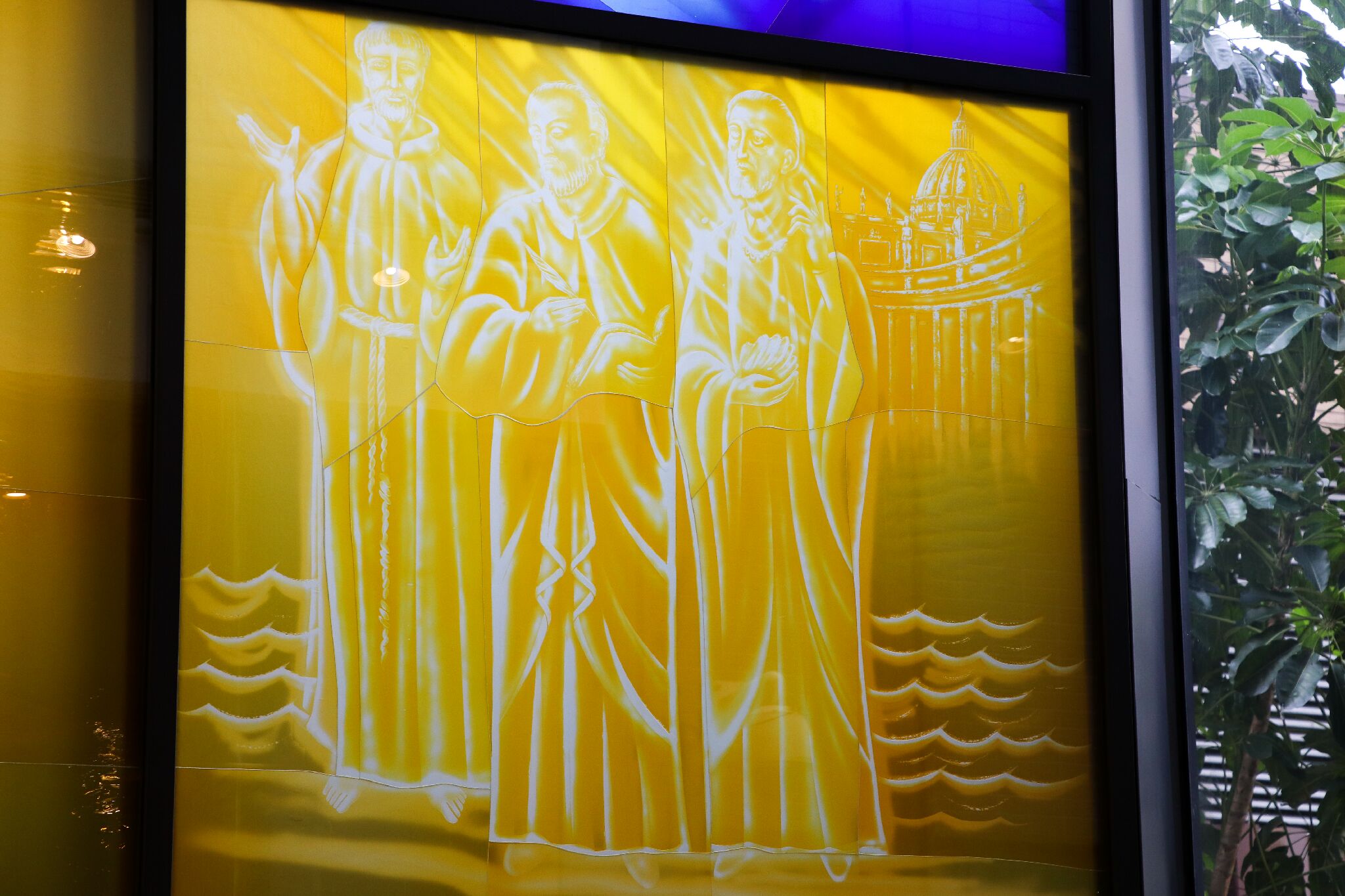 圣堂外的设计融入三位主保的元素。