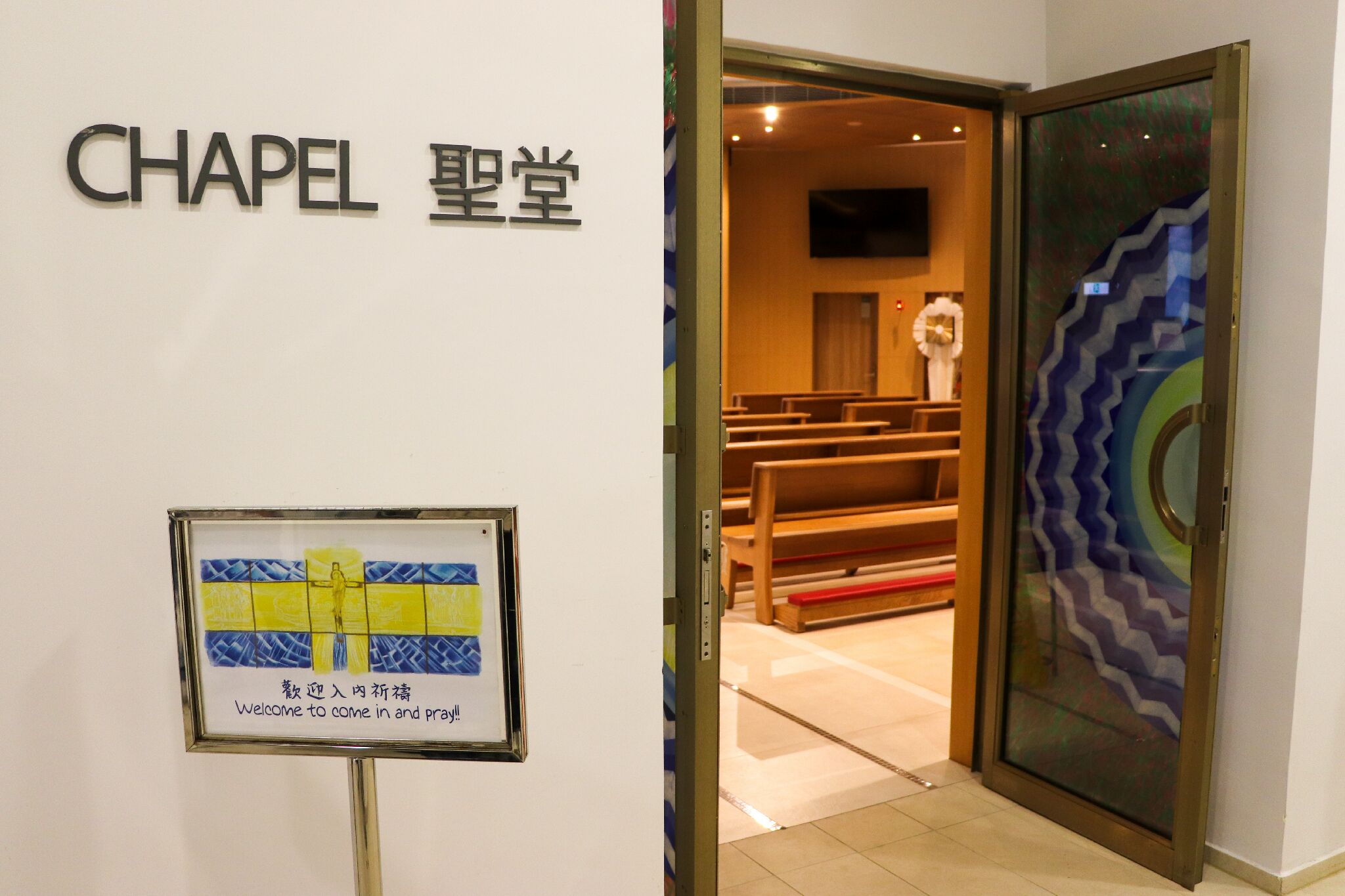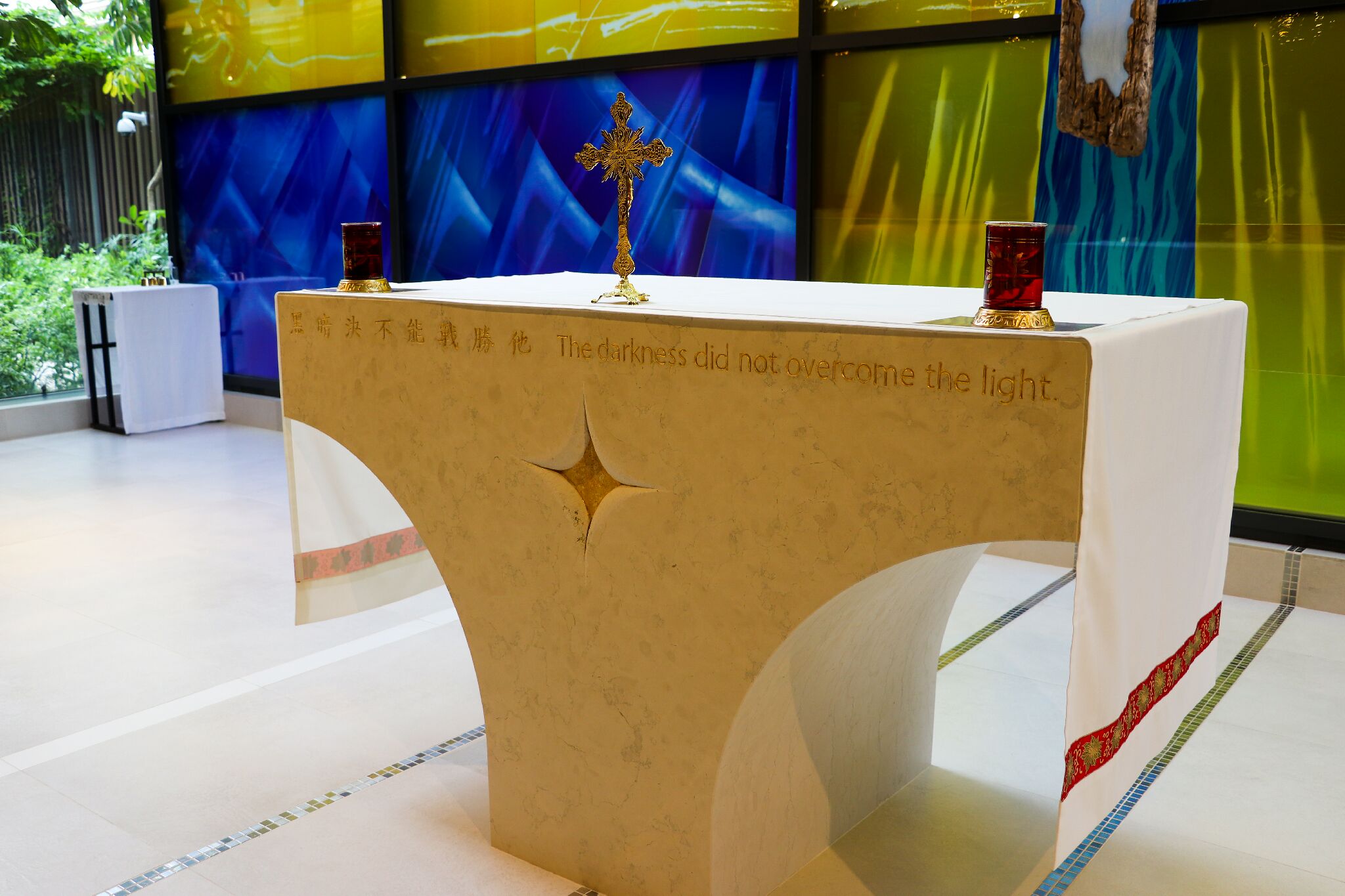 圣堂的十字架是 Poli 在香港独一无二的设计,代表复活的耶稣。