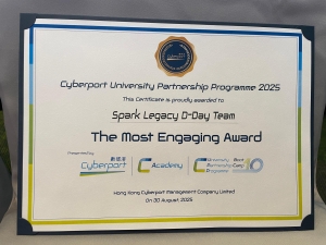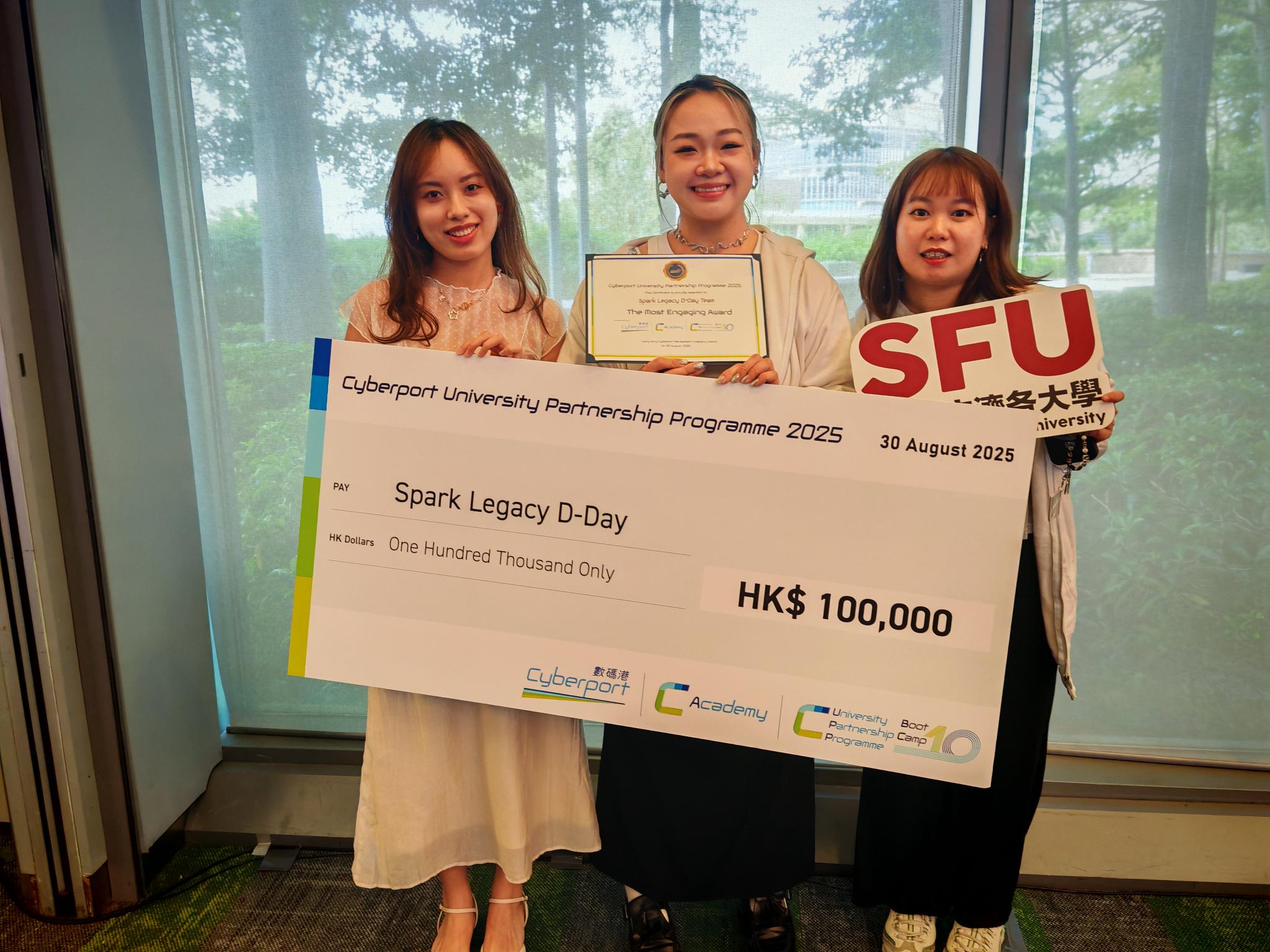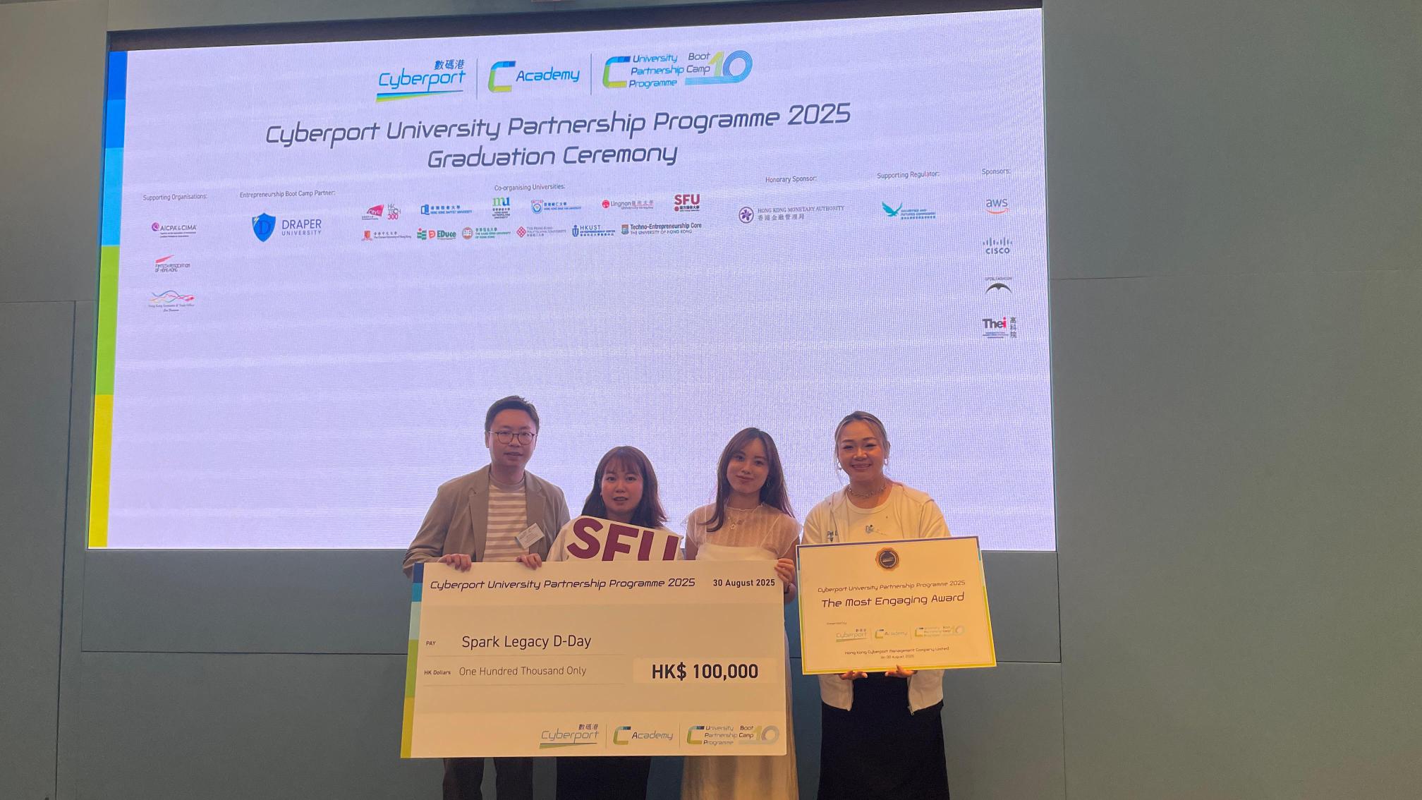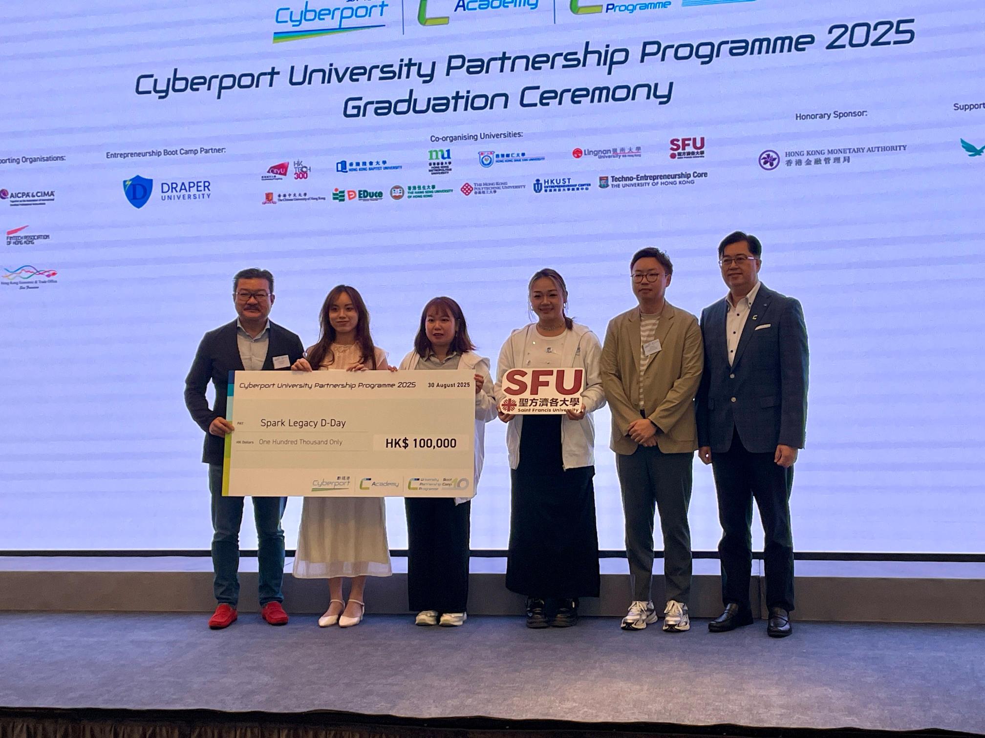 「数码港.大学合作伙伴计划 2025」的圣方济各大学代表队由设计新创企业管理(荣誉)学士课程(兼读制)三名学生组成,他们向数码港评审团展示创新方案Spark Legacy D-Day,赢得「数码港创意微型基金」(CCMF)港币 10 万元种子资金,支持他们在未来六个月内开发产品原型。