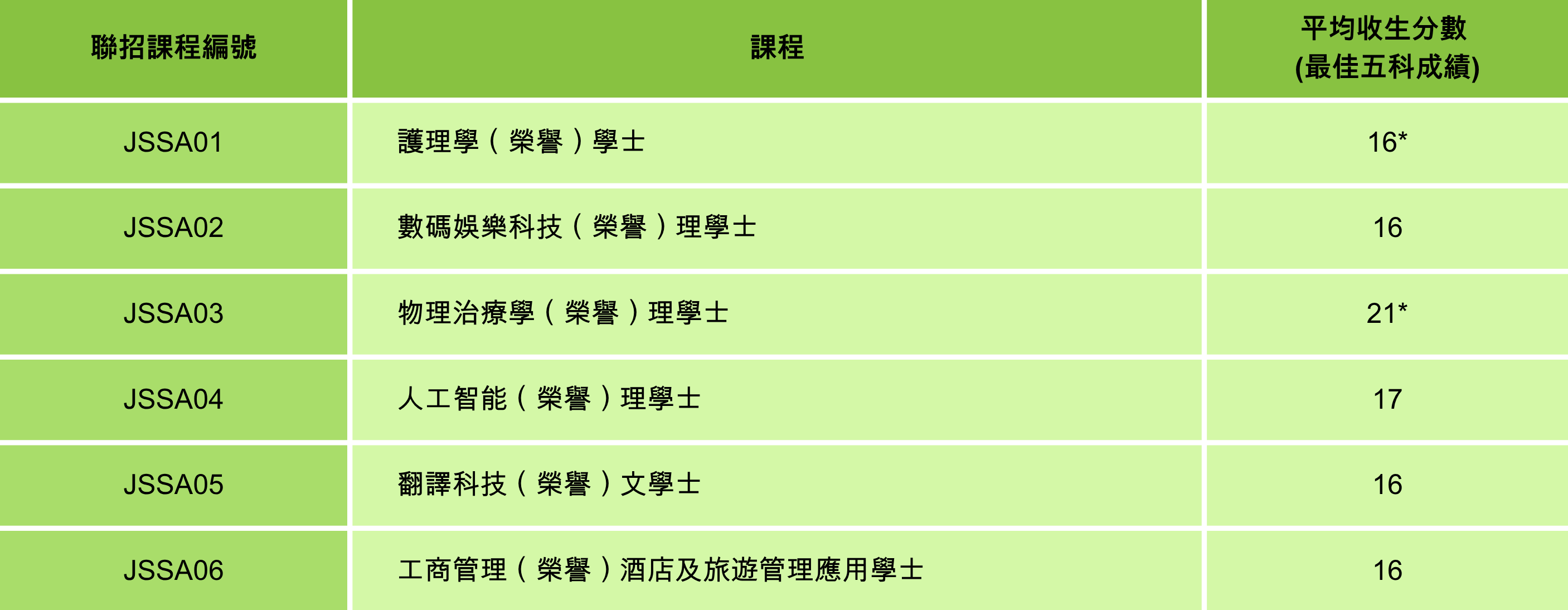 - [JSSA01] 護理學(榮譽)學士 (部份學額為應用學位學額) 備註1,2