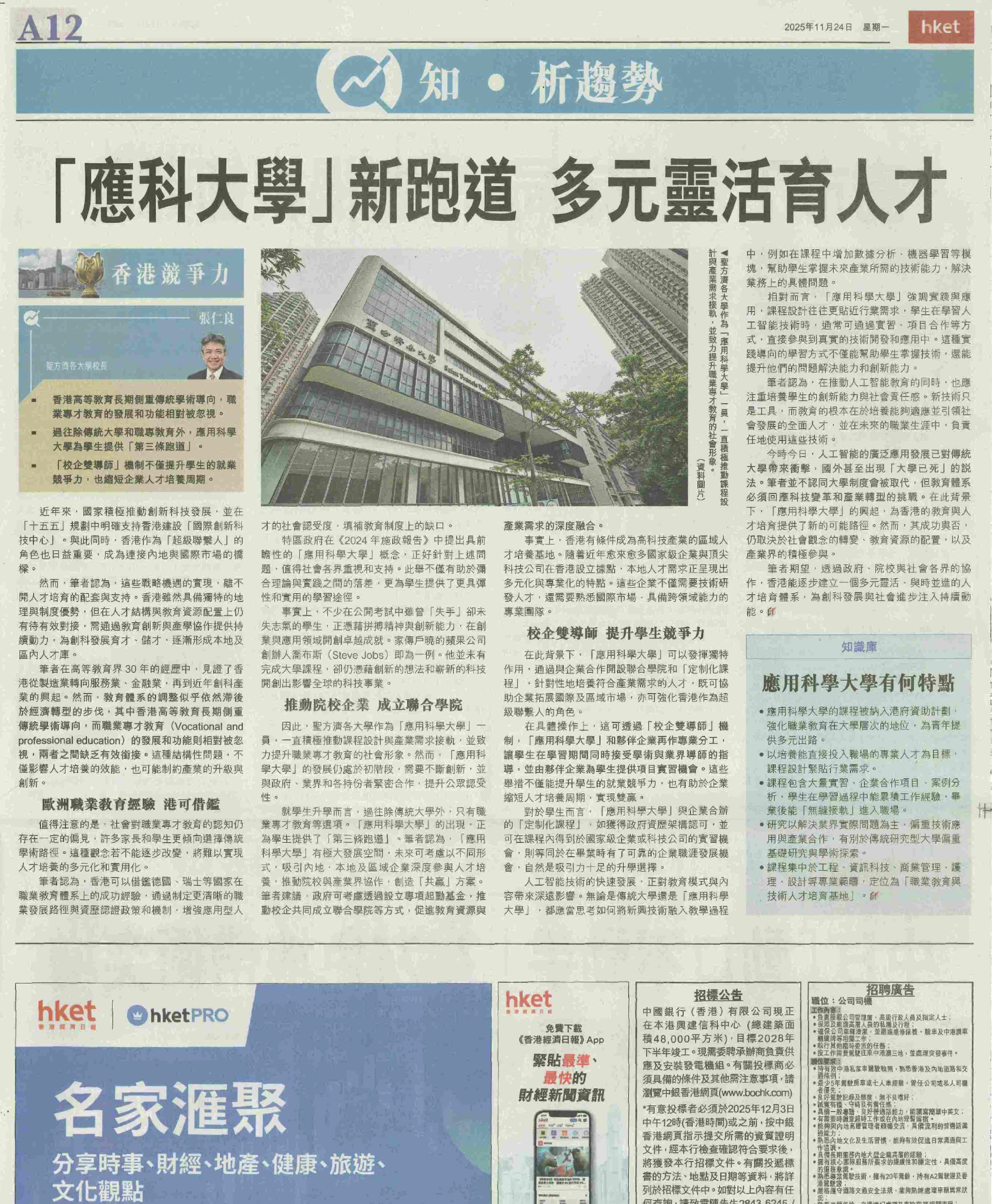 傳媒採訪 - 張仁良教授:「應科大學」新跑道 多元靈活育人才 2025-11-24