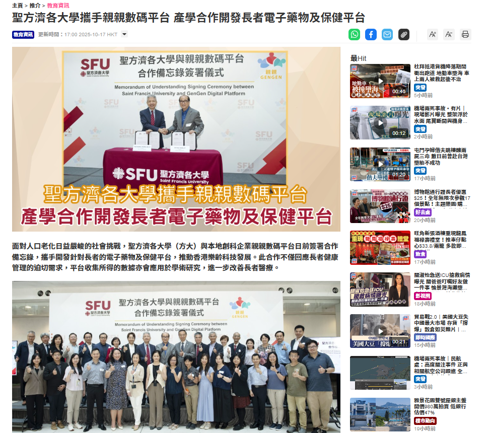 傳媒採訪 - 聖方濟各大學與親親數碼平台簽署合作備忘錄 相關報道 2025-10-20