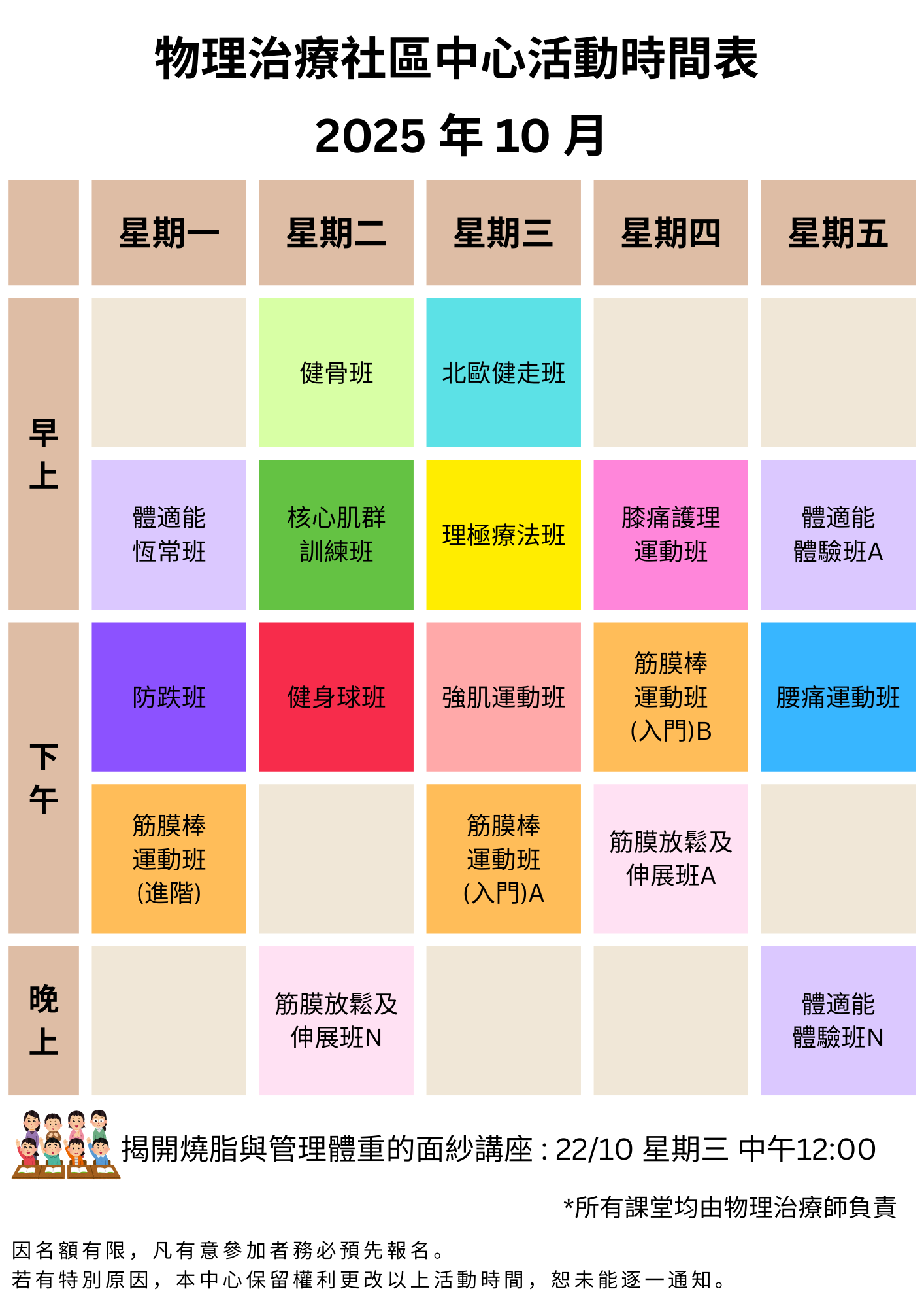 運用瑜珈球,專注提升核心力量與穩定性。針對提升力量、協調性及穩定性,減輕腰背負擔。不適合使用助行器或行動不穩的人士參加。